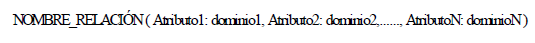 Una relación se compone de un nombre, unos atributos (con sus correspondientes dominios) y un conjunto de tuplas, y se define de la siguiente manera: