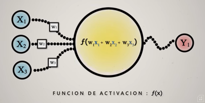 Para poder realizar un procesamiento de la información complejo, es necesario añadir a la neurona una función de activación, que será la que proporcione a la suma ponderada interna la no linealidad que sea necesaria. Nos queda entonces: Y = f(W1X1 + W2X2 + W3X3 + b)